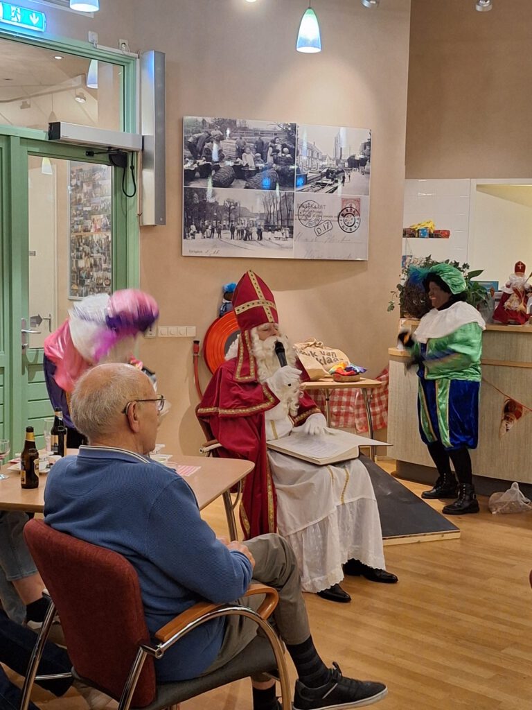 Op woensdag 3 december kwamen de Sint en zijn Pieten op bezoek. Wat was het weer gezellig. De Pieten hebben met bewoners spelletjes gedaan. We hebben heerlijke erwtensoep gegeten. Deze was gemaakt door een bewoner en een vrijwilliger. Heerlijk!!